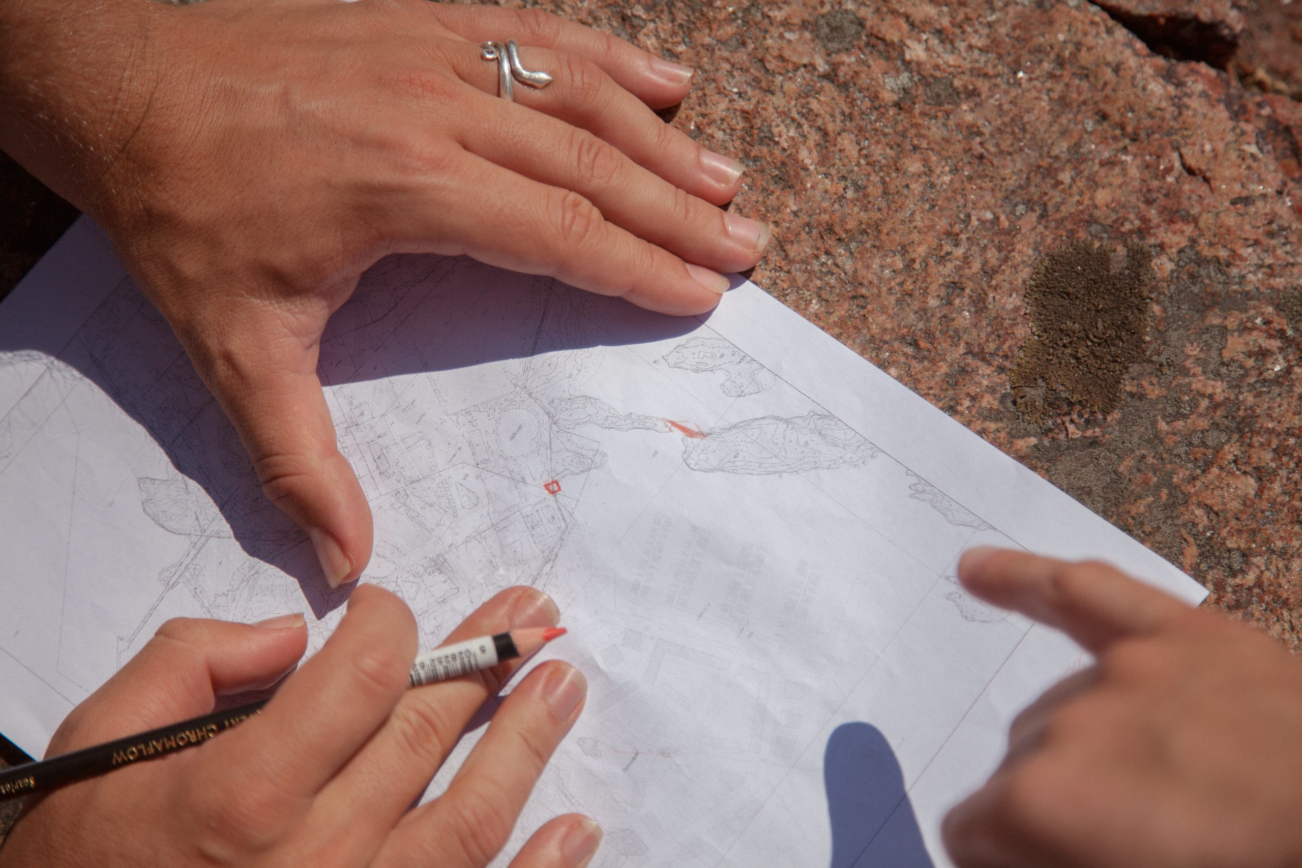 During the Helsinki residency, using a role-play format game, Gabrielė invited the Experiments Platform team to step directly into the construction site of the Kruunuvuorenranta project being developed in Laajasalo and discuss the ghosts of the place. What are the values of this territory? What actors are involved in this process? Who creates the reason for the miscommunication? Each participant embodied a different character – a bird, a local resident, an activist, an oil company employee, a developer, a fisherman. Pairs of these characters set off to wander the boundless construction site, among soil, sand, gravel hills, piles of blasted rocks and working machines. Having detected the spirit of conflict at play, the characters marked the chosen territory and left a building permit document there. This experiment involved reflections on the inertia of large scale construction projects, the course of miscommunications that arise in the process, responsibility and agency of the architect, the indifference of residents, and raised the question – how to find a point of dialogue between residents, developers, activists, builders, and non-human beings?